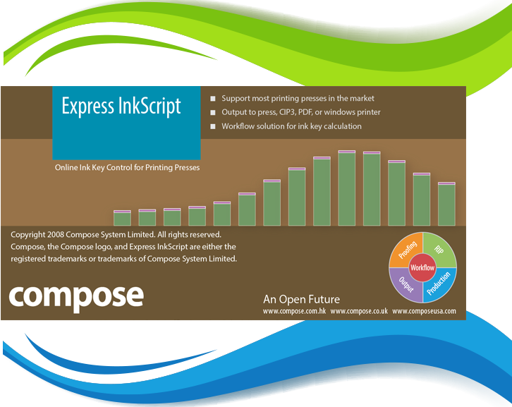Express InkScript is a comprehensive solution for ink key presetting. It reads 1-bit tiff file from RIPs, analyzes and generates CIP3 files for the ink control unit. It can also read CIP3 data files in from selected front end system, ready for the ink control unit to set the ink key value on the press.